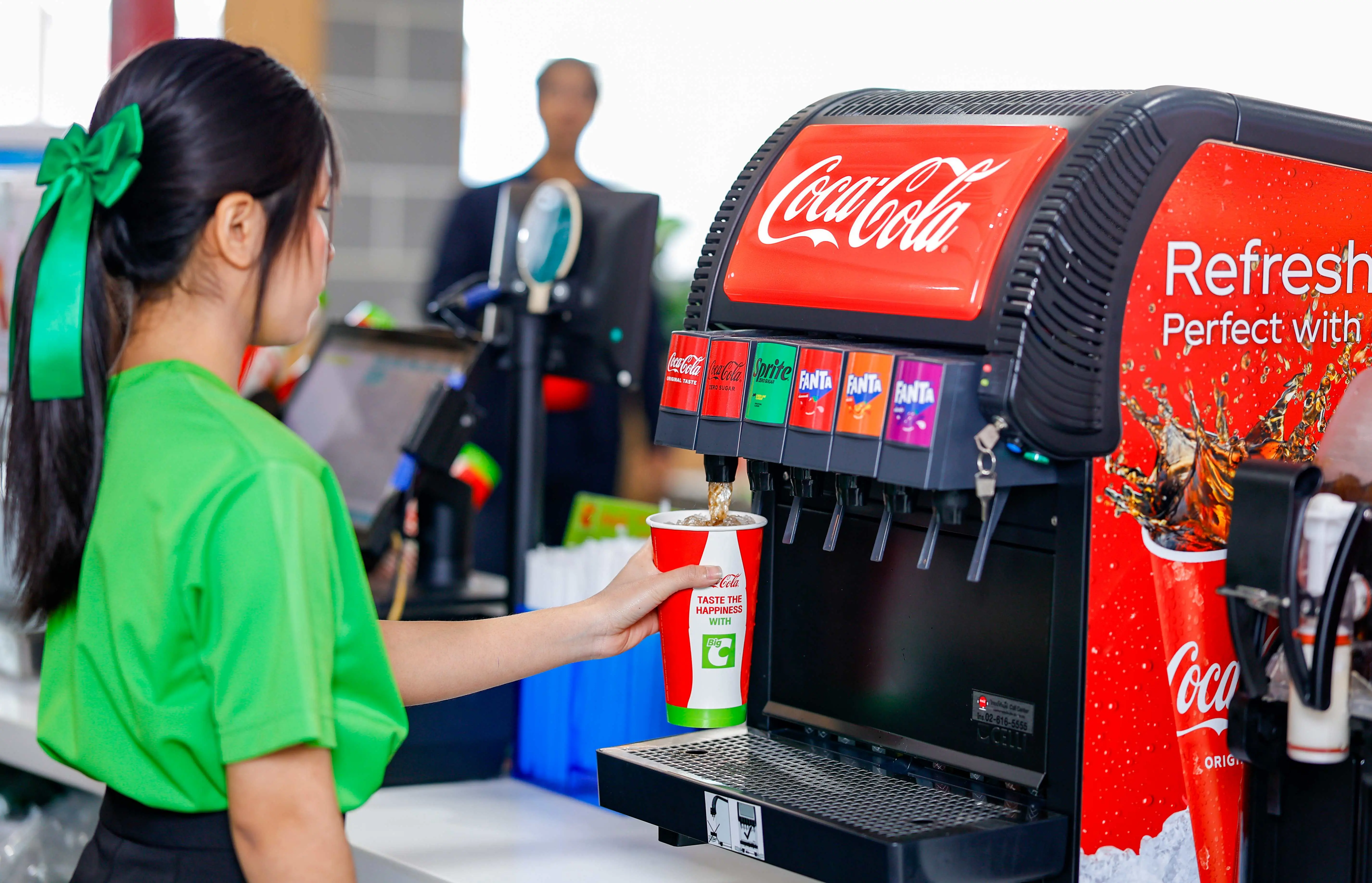 เครื่องดื่มจาก “โคคา-โคล่า” พร้อมเสิร์ฟความซ่าสดชื่นในศูนย์อาหารบิ๊กซีทุกสาขาทั่วประเทศ โดยมี “โค้ก” รสชาติออริจินัล “โค้ก” ไม่มีน้ำตาล “สไปรท์” ไม่มีน้ำตาล “แฟนต้า” กลิ่นส้ม กลิ่นสตรอเบอร์รี และกลิ่นองุ่น และยังมีเครื่องดื่มไม่อัดลมอย่าง “มินิทเมด” สแปลช และน้ำดื่ม “น้ำทิพย์” อีกด้วย รวมทั้งโปรโมชั่นสุดพิเศษ เปิด “โค้ก” รับปีใหม่ ซื้อน้ำอัดลม แบบแก้ว ขนาด 32 ออนซ์ ในราคาเพียง 26 บาท และ Big C X Coca-Cola รับรางวัลสุดซ่ากับโค้ก เมื่อซื้อ “โค้ก” หรือ “โค้ก” ไม่มีน้ำตาล ขนาด 32 ออนซ์ ที่ศูนย์อาหารบิ๊กซี และสะสมยอดซื้อให้ครบ 899 บาท โดยส่งรูปใบเสร็จผ่านทาง LINE Official Account: @CokePromotion รับฟรี หมวก OG COCA-COLA (Limited Edition) มูลค่า 499 บาท (ของรางวัลมีจำนวนจำกัด) ตั้งแต่วันนี้ ถึงวันที่ 28 กุมภาพันธ์ 2569